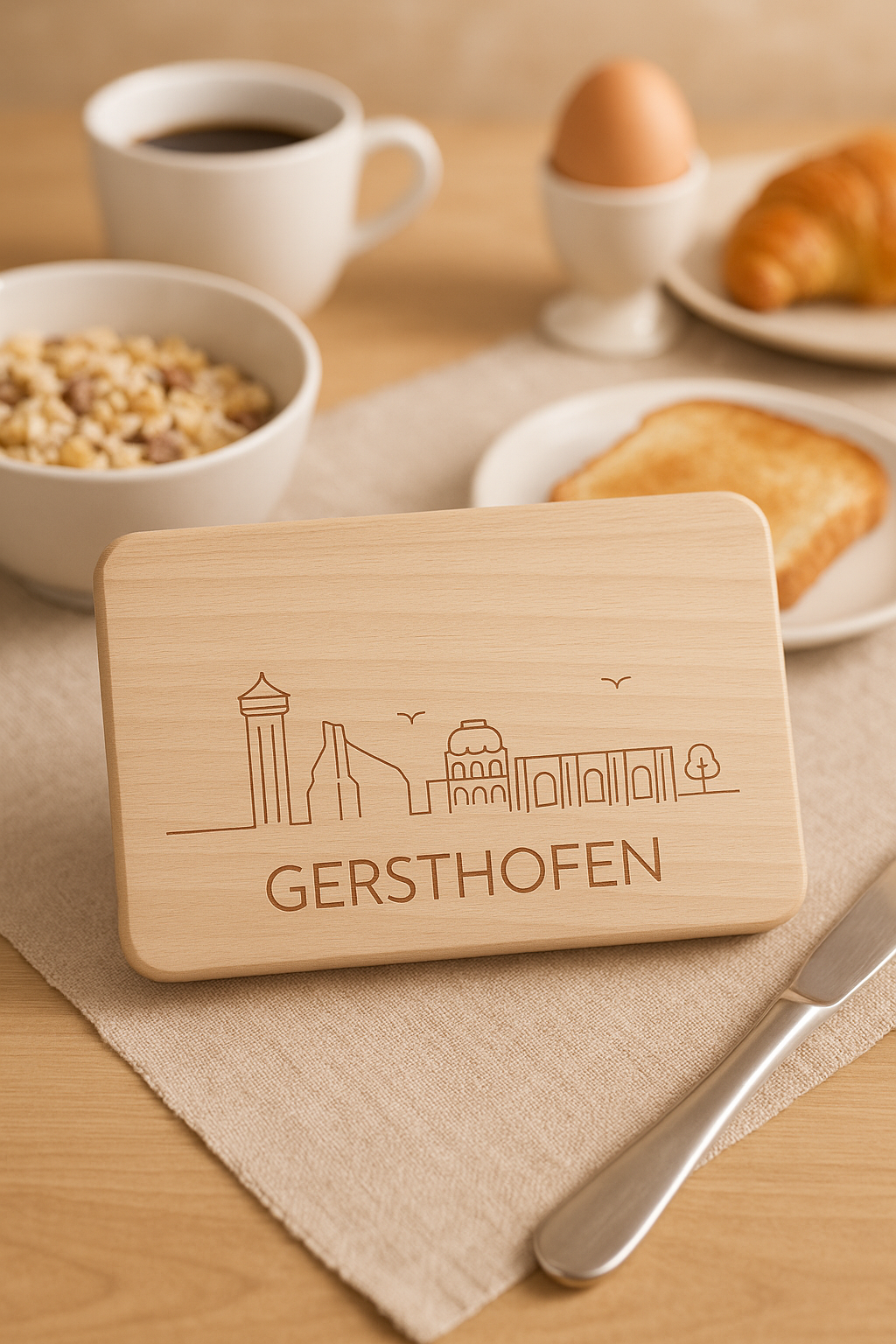 Mit dem Gersthofen Frühstücksbrettchen holst du dir ein Stück Heimat auf den Tisch. Das stilvoll gestaltete Brettchen mit Gersthofen-Motiv ist ideal für Frühstück, Brotzeit oder kleine Snacks und überzeugt durch seine praktische Alltagstauglichkeit.