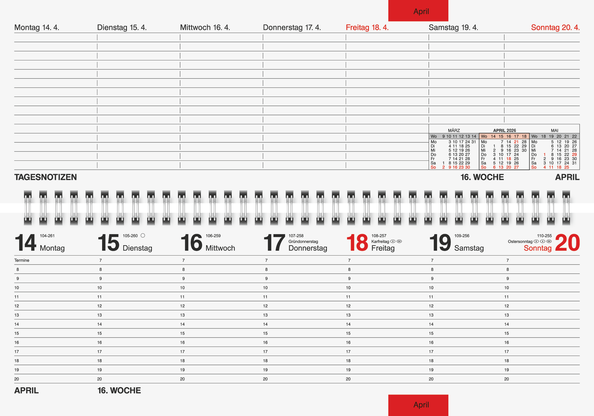Tischkalender 2026 quer gold